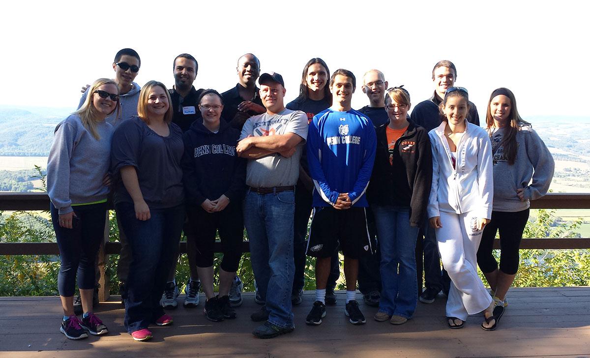 Fourteen Penn College students were trained as “Healthy Wildcats” at the Morgan Valley Retreat Center in Nippenose Township on Saturday. During the all-day training retreat, the students learned vital information about what it means to be a peer health educator, strategies for promoting healthy behaviors among college students, listening skills, responding and referral skills, intervention skills, and programming and presentation skills. Each member also committed to attending organizational meetings and assisting with health-promotion activities on campus. The Healthy Wildcats’ first activity will be to join Students Making a Contribution at the “Out of the Darkness” Walk for Suicide Awareness and Prevention on Sunday at Indian Park in Montoursville. Healthy Wildcats are a group of Penn College students who promote health and wellness on campus through events and advocacy. For more information about the group, contact Kristi L. Hammaker, health and fitness specialist (who provided the photo) by email or at ext. 7621. Students, their hometowns and majors are: back row, from left, Giovanni A. Calle, Shohola, manufacturing engineering technology; Abdulrhman K. Alrasheed and Mohammad A. Kanwi, Williamsport, both plastics and polymer engineering technology; Anders T. Felton, Armagh, welding fabrication and engineering technology; Seth D. Veneziano, Bellefonte, culinary arts technology; and Brandon R. Ginter, Abbottstown, construction management. Front row, from left, are Meagan E. McGeehan, Landisville, dental hygiene; Tara I. Butler, Milesburg, Alyssa P. Willover, West Chester, and Robert J. Rowse Jr., Milton, all nursing; Tyler Youngs, Media, physical fitness specialist; Kayla M. Jackson, Warren, pre-nursing; Stephanie L. Weidman, Westfield, human services; and Emily M. Yoder, Catawissa, dental hygiene: health policy and administration concentration.