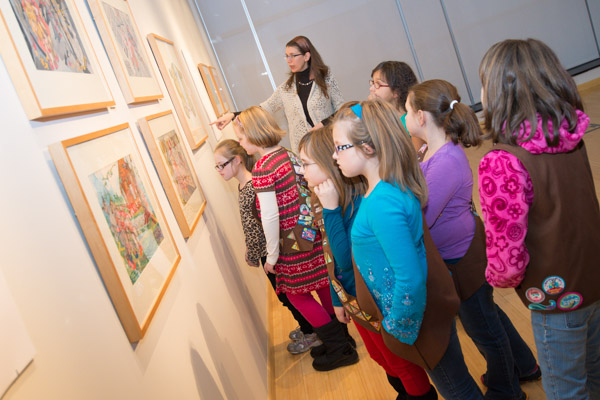 Brownie Troop 60232, among the local Girl Scout groups to recently tour The Gallery at Penn College, visited campus Friday afternoon – one of the final exhibition days for "The Art and Illustrations of Zelda Fitzgerald." Gallery manager Penny G. Lutz (who guided the girls through the exclusive exhibit) personally returned the display items Monday to Cecilia Ross, Fitzgerald's granddaughter, who traveled to campus from Kennett Square to attend the mid-November opening.