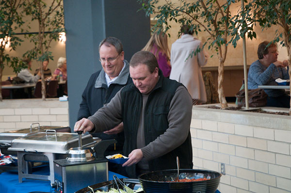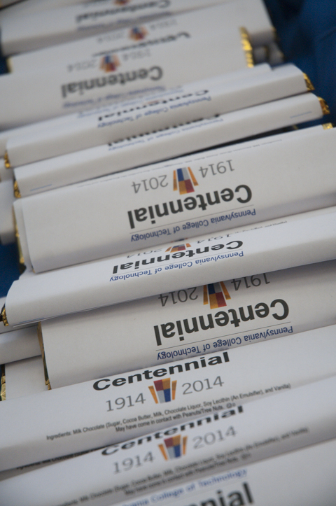 A serve-yourself nacho bar brought some south-of-the-border spice to a still-frosty Penn College on Thursday, a piquant prelude to a yearlong observance of the institution's centennial. Co-workers gathered in the Keystone Dining Room at President Davie Jane Gilmour's invitation to kick off the 100th birthday bash for adult education on campus. In addition to free nachos, commemorative magnets and chocolate bars (with wrappers offering a discount on centennial-themed apparel at The College Store) were given away. Another integral party guest – the college's student body – will join the festivities during a Jan. 21 basketball doubleheader against Penn State DuBois in Bardo Gym, just one of the many events on tap for the coming months.