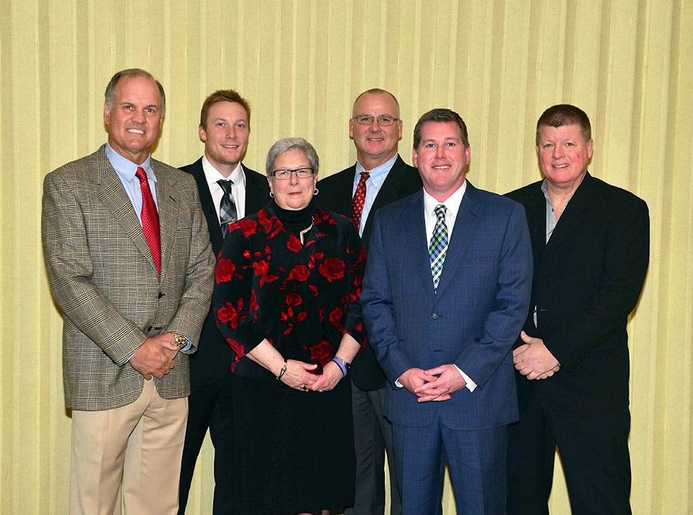 In her capacity as chair of the Little League International Board of Directors, Penn College President Davie Jane Gilmour attended Monday's Williamsport Crosscutters Hot Stove Banquet. The annual charity event, held at The Genetti Hotel, helps eager baseball fans get through the seemingly interminable months before major-league Opening Day. Pictured, from left, are Ryne Sandberg, new manager of the Philadelphia Phillies; Cody Asche, Phillies third baseman (and former Crosscutter); President Gilmour; Joe Jordan, director of player development for the Phillies; Gregg Murphy, field reporter for Phillies TV broadcasts; and former major leaguer (and Montoursville native) Tom O'Malley, hitting coach for the Hanshin Tigers in Japan. The evening, which include the auctioning of sports memorabilia, raised more than $5,000 for the Lycoming County Special Olympics.Photo provided by the Williamsport Crosscutters