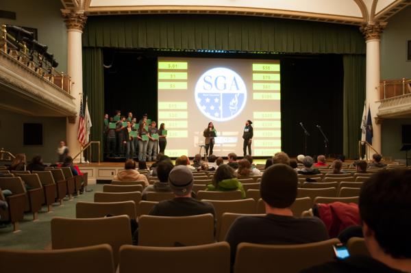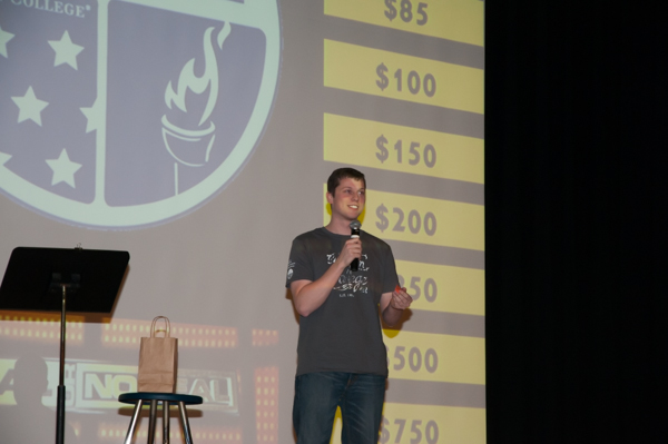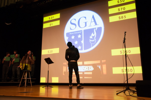 The home version of NBC's popular "Deal or No Deal" game show came to Penn College's Klump Academic Center Auditorium on Friday night, as the Student Government Association staged a winning event. Craig A. Miller, assistant professor of history/political science, proved a genial and quick-witted emcee for the evening, which offered students the chance to win cash and other prizes. Money-winners were Kevin A. Palacios ($135), Matthew D. Lowe ($90) and Levi G. Cross ($50). Kenny Eugene and Kacey S. Ammerman won $25 Sheetz gift cards, Robert J. McClellan and Kimberlee A. Dickinson went home with $15 gift cards from Kimball's, Matthew J. Osborn and Lydia G. Shippee were winners of $15 Starbucks cards, Zachary L. Lundberg won a $25 gift card to Wegmans, and Morgan J. Tannery won entry to a "meet and greet" with Switchfoot when the band performs Feb. 20 on campus.Photos by Marc T. Kaylor, student photographer