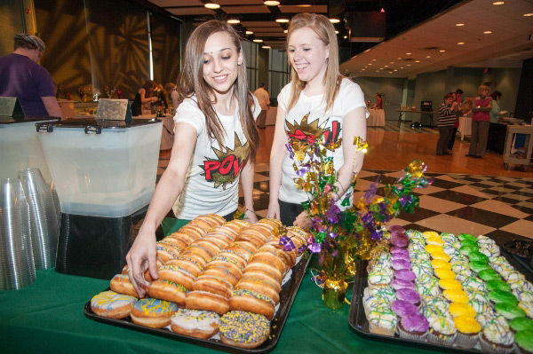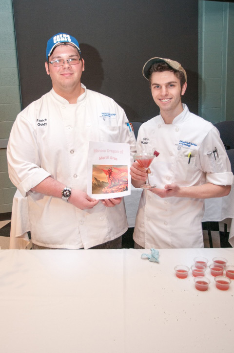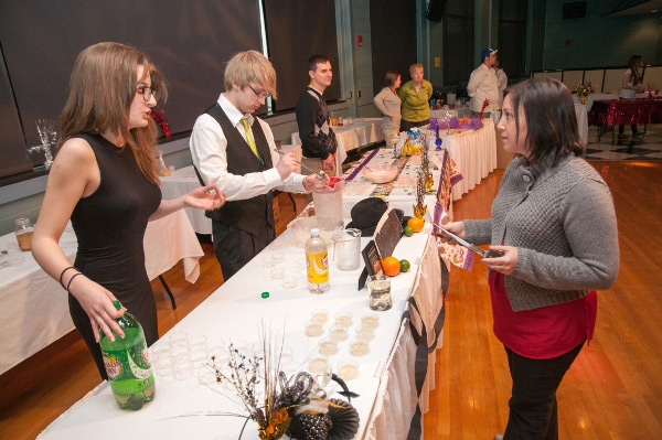"The 14th Annual Happy Hours, Mardi Gras-Style!" held Tuesday in Penn's Inn got students in the mood for a stress-free (and problem-free) Spring Break. In addition to comprehensive information about travel smarts and safe behavior, there were free "Fat Tuesday"-inspired food and refreshments, music, prizes – and the traditional nonalcoholic "mix-off" competition. Student-concocted "mocktails" were judged and sampled at the event, which was hosted by counselor Michael S. DiPalma. The evening was co-sponsored by Counseling Services, the Student Activities Office, College Health Services, Dining Services and the School of Business & Hospitality.Photos by Craig R. Urey, student photographer