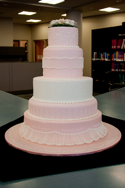 Ching Chan, of Milton, placed first in the student Tiered Cake category for a pink cake with delicate lace and bridgework techniques.
