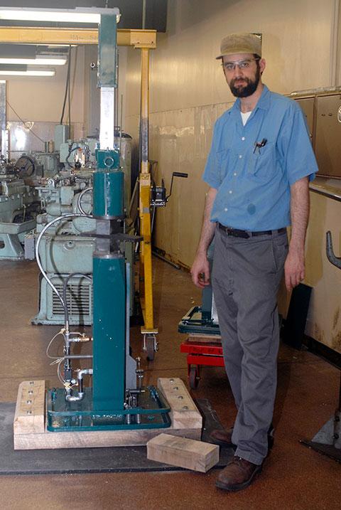 Ravizza used that extensive mechanical background and his own resourcefulness throughout the countless hours devoted to his senior project. The high cost of desired materials forced him to rely on junkyard supplies, secured for 50 cents per pound. The variable nature of the manufacturing process required him to alter his preliminary design, which was inspired by an older friend’s successful construction of a forging hammer.“A lot of it was built on the fly,” said Ravizza, a member of Alpha Chi, a national honor society for baccalaureate students. “As I was working on it, some other thoughts came up, and the design changed as the project progressed.”