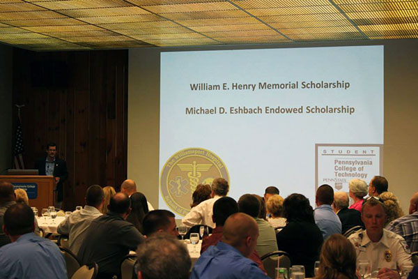 More than $2,300 in Penn College student assistance was raised at the recent Susquehanna Regional EMS Appreciation Banquet and Alumni Reunion, which celebrated 35 years of paramedic excellence at the institution. Held at the college's Thompson Professional Development Center, the annual event allowed for reminiscence and recognition among graduates of the School of Health Sciences' emergency-response majors.Photos provided by the Alumni Relations Office