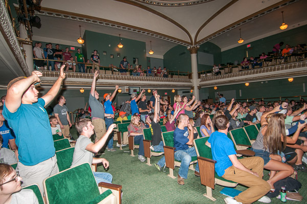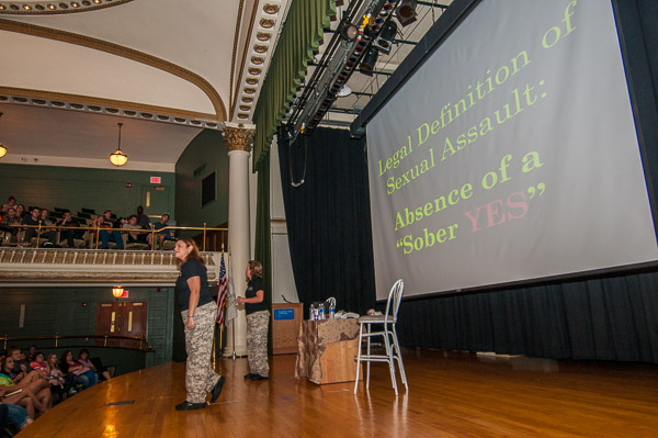 Making a return trip to Penn College, authors Joni Frater and Esther Lastique renewed their "Sex Ed Boot Camp" presentation for about 500 students in the Klump Academic Center Auditorium on Wednesday night. With humor, patience, sensitivity and straightforward answers, the pair facilitated a matter-of-fact discussion of sexual health and intimacy – a respectful dialogue with their young audience about smart decisions (and the life-altering consequences of poor ones). The visit was organized by Student Activities and College Health Services, and partially funded through a grant from the Female Health Co.Photos by Dalaney T. Vartenisian, student photographer