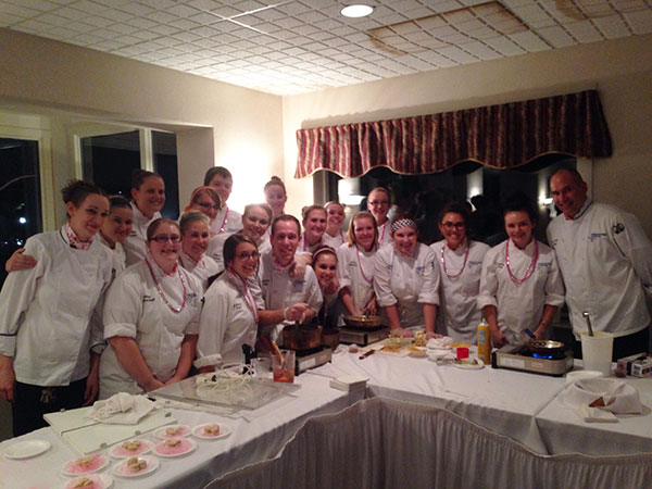 Students in the Classical and Special Dessert Presentation course, taught by Todd M. Keeley, instructor of baking and pastry arts/culinary arts, and Callie L. Proctor (’08), part-time instructor of baking and pastry arts, attended and prepared desserts for last week's Evangelical Community Hospital’s Fourth Annual “Cookin’ Men” event. The benefit is an evening of fun, good spirits and culinary delights prepared by local male celebrities in support of the Lewisburg facility’s Thyra M. Humphreys Center for Breast Health. The event, held at the Susquehanna Valley Country Club in Selinsgrove, attracted nearly 400 guests and raised $23,000 toward the fight against breast cancer.Photos by Brian D. Walton, coordinator of academic operations, School of Business & Hospitality