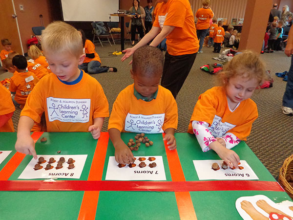 Preschool classes from the Dunham Children’s Learning Center visited the James V. Brown Library on Thursday, participating in a program with children’s author Lindsay Barrett George. She read “That Pup,” her book about a dog, a squirrel and acorns. The children enjoyed visiting a variety of activity stations that featured therapy dogs, math and art. The morning culminated in a scavenger hunt for acorns. This event was part of a statewide “Speak Up” initiative promoting libraries; funding for transportation to the library was provided by Keystone STARS.Photos by Linda S. Dellaquila, CLC group leader