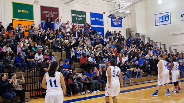 Approximately 400 students turned out for the Penn College Midnight Madness on Thursday night to help kick off the NCAA men’s and women’s basketball season. Held in Bardo Gym, the event featured interviews with the coaches, team introductions, prizes, giveaways and a Battle of the Sexes 3-point contest. The Penn College Dance team performed a well-choreographed number that included many of the Wildcat basketball players, and the night wrapped up with a scrimmage between the men’s and women’s teams. Athletics thanks Gwendolyn Ntim, who sang a gorgeous national anthem, and the Penn College Diners Club for providing delicious snacks for the event. Good luck to the Wildcats this season!Photos by Lizze A. Robinholt, secretary/receptionist for athletics