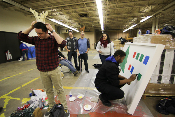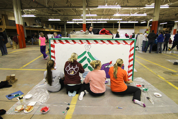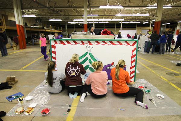 There hasn't been a significant snowfall in the area yet, but there was a definite seasonal flurry in the General Services warehouse on Wednesday evening. Continuing a beloved year-end activity, Penn College's student organizations and campus offices spent several hours working on their respective holiday cards. The large-scale greetings will be transported next week from the Reach Road facility to main campus, where they will be installed prior to an official lighting ceremony at 5 p.m. Wednesday, Dec. 3.Photos by Dalaney T. Vartenisian, student photographer