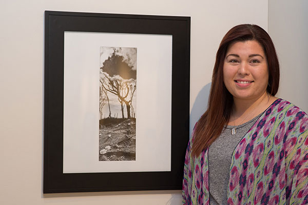 Ronni N. Warner, a junior enrolled in pre-applied health studies, won the honor for her work, “Traveling Through Amelia,” a black-and-white print relating to the exhibit’s “Past, Present, Future” theme.