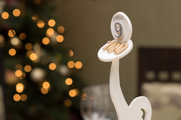 Centennial details also adorn table markers in Le Jeune Chef.