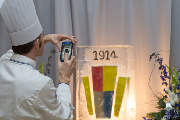 ... then snaps the Centennial ice sculpture as a keepsake of his own.