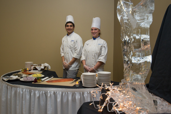 Ready to serve appetizers are Sarae D. Davis, of Nescopeck, a culinary arts and systems major, and Seth D. Veneziano, of Bellefonte, enrolled in culinary arts technology.