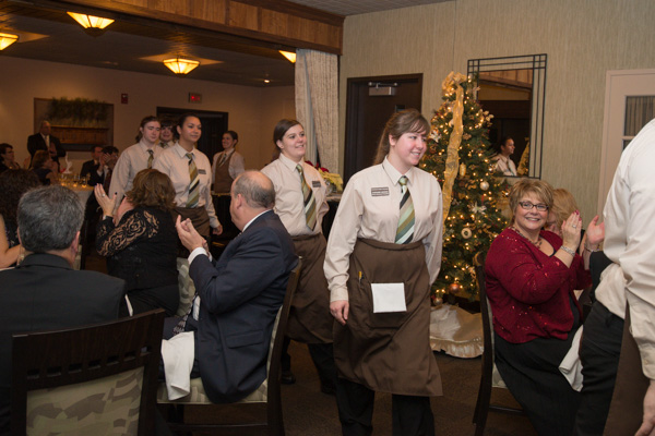 Patrons' applause greets the students' traditional after-dinner walk through the dining room.