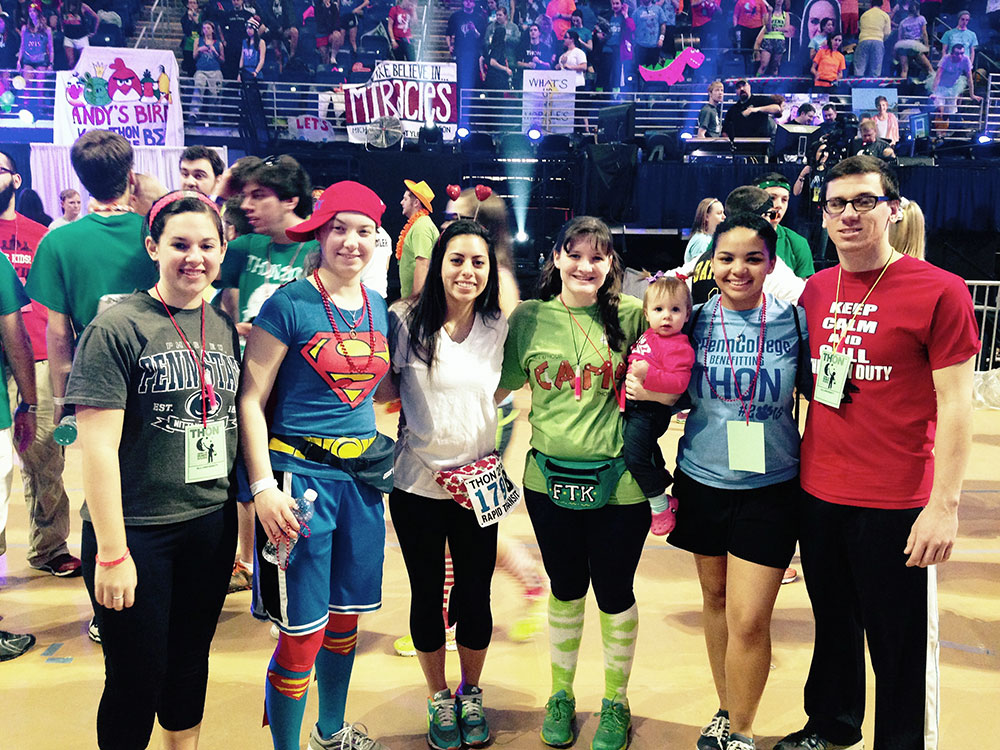 "For the kids" (and for its second consecutive year), Penn College sent two dancers and an invaluable support network of cheerleading friends, classmates and donors to the recent Penn State Interfraternity Council/Panhellenic Dance Marathon – more simply known as THON. The nation's largest student-run philanthropy, the yearlong effort raises funds and awareness for the fight against pediatric cancer. Representing Penn College Benefiting THON on the floor of the 46-hour dance marathon, held in late February at Penn State’s Bryce Jordan Center to benefit the Four Diamonds Fund were Sarah M. Luprek, of Berlin, enrolled in health arts: practical nursing emphasis, and Stephanie C. Myers, a culinary arts and systems major from Catawissa. "THON was an amazing experience for me, especially as a freshman. I would do it again if I got the chance," Myers said. "It was great to see the smiles on the children's faces during the weekend. For those 46 hours, it was like they were just normal kids having the times of their lives. Being able to just hang out with those kids for a little bit is something special, and I am proud to have represented Penn College at THON." The Penn College organization held a number of fundraisers throughout the year, coupled with street-side collections and online donations, contributing to THON's overall total of $13,026,653.53.Photos provided