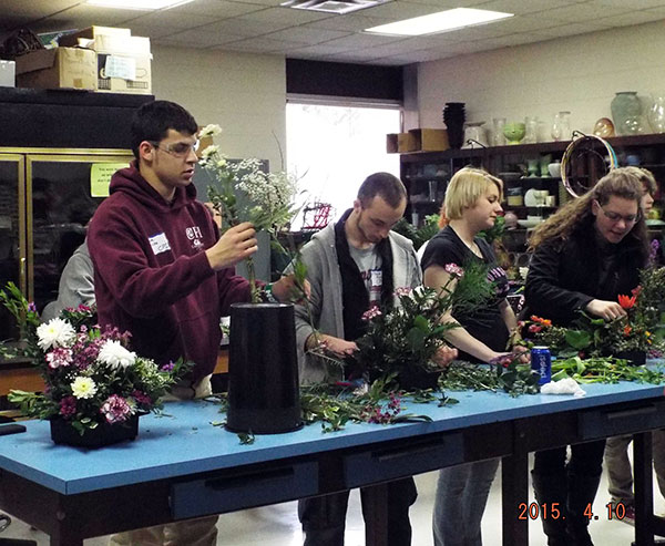 The Horticulture Department recently hosted the fifth annual High School Horticulture Field Day competition at the Schneebeli Earth Science Center. The event is based on the National Collegiate Landscape Competition that Penn College students regularly attend, sponsored by the National Association of Landscape Professionals. This year, two schools – Central Pennsylvania Institute in Bellefonte and Williamsport Area High School – brought a total of 22 students to the Allenwood area campus on April 10 to compete in contests such as hardscape installation, sales presentation, floral and corsage design, plant identification and equipment safety. Seven alumni of the program returned to judge, with help from current students. “This is a great day to showcase what we do for these high school students," horticulture instructor Carl J. Bower Jr. said. "Faculty, staff and administration all come together to help put on a great day for the students. Having our alumni on hand gives them the chance to help mentor these young folks and share their experiences in the industry. The students get to learn firsthand some of the opportunities in this field."Photos by Bower; Deborah C. Books, secretary to the dean of transportation and natural resources technologies; and Becky J. Shaner, alumni relations specialist