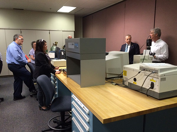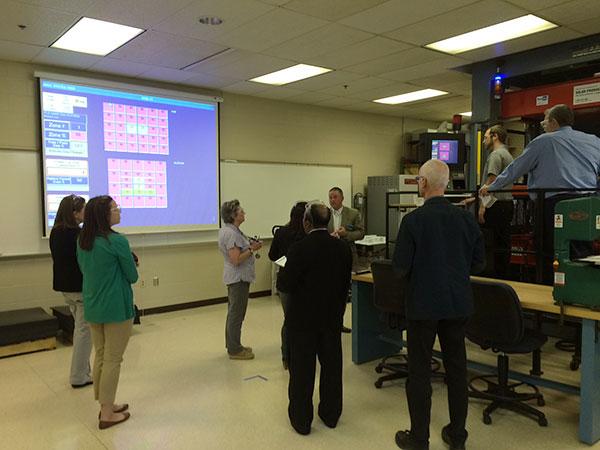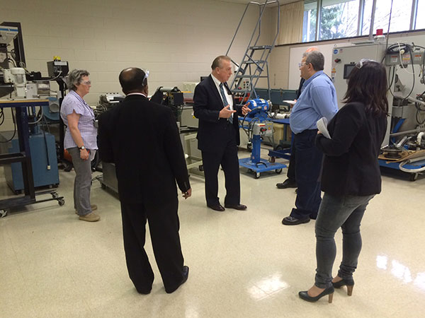 The excellence of the Plastics Innovation & Resource Center reached an international audience on Tuesday. Journalists representing plastics trade publications from India, France, Denmark, the Netherlands and the United States toured the PIRC and plastics labs at the college. Facilitated by the Pennsylvania Department of Community & Economic Development, the visit promoted the desirability of central Pennsylvania for international companies with a stake in plastics. According to Sarah Thomas, a spokesperson for DCED, Greiner Packaging, one of Europe's leading plastic packaging manufacturers, opened a plant in Pittston within the past year because of its proximity to the expertise at the PIRC. Hank White, director of the PIRC; Christopher J. Gagliano, PIRC program and technical service manager; Gary E. McQuay, PIRC engineering manager; Tracy L. Brundage, vice president for workforce development; and Timothy E. Weston, associate professor of plastics and polymer technology and department head, addressed the international contingent. Julia I. Gilchrist, of Hanover, and Jared W. Mahaffey, of Linden, both juniors in the plastics and polymer engineering technology major and PIRC research assistants, demonstrated equipment. The visitors were impressed to hear Weston report that all 12 plastics students scheduled to graduate in May have already obtained jobs.