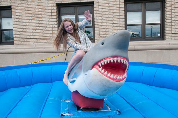 Colleen E. Bowes, of Wayne, tames the mechanical shark.
