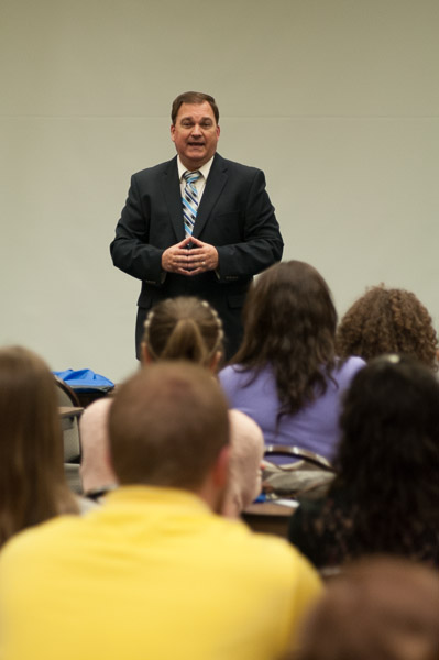 Students from high schools and middle schools around Lycoming County convened on the Penn College campus Wednesday for the grand finale of EconomicsPennsylvania’s Stock Market Game. The Stock Market Game is a classroom simulation that offers players the opportunity to invest a hypothetical $100,000 in stocks, bonds and mutual funds. Prior to receiving awards for the highest total end-of-game equity, the students attended a professional meet-and-greet with business representatives and faculty and staff from the Penn College School of Business & Hospitality, and heard remarks from Gerri F. Luke, dean of business and hospitality; Terry A. Girdon, professor of business administration/management; John D. Grigsby, assistant professor of business administration/accounting; Bernard A. Oravec, publisher of the Williamsport Sun-Gazette; and Sam Ryder, senior vice president of FNB Bank.