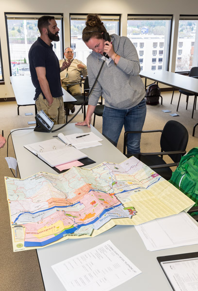 In collaboration with the Lycoming County Emergency Management Agency, Penn College emergency management technology students recently participated in a disaster exercise at the city’s Emergency Operations Center in response to a tornado impacting the Greater Williamsport area. Students role-played as EOC staff members in response to the "disaster" and simulated the coordination that would occur among emergency management; first responders; nongovernmental organizations; businesses; and local, county, and state government agencies.