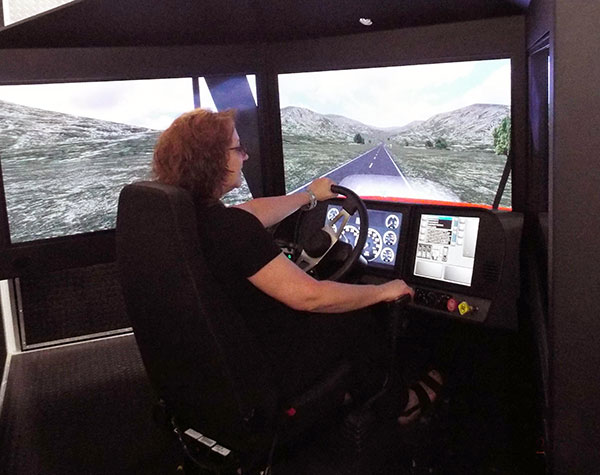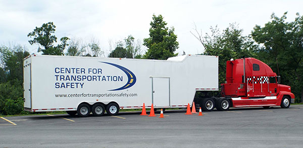 A CDL Open House, held Thursday to attract students into Penn College's Commercial Driver's License program, was co-hosted at the Schneebeli Earth Science Center by Workforce Development & Continuing Education and the Center for Transportation Safety. CTS brought a simulated rig to the event so that potential students could experience driving a tractor-trailer; a skid steer was also on hand to let participants practice vehicle control. WDCE, which contracts with CTS to provide CDL Class A training at the college's Energy Technology Education Center site along Route 15 near Allenwood, hopes to add Class B and CDL Refresher Safe Driving courses to its portfolio.Photos by Pamela Mix and Hadly Ransom