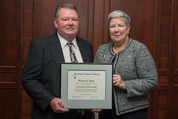 Pennsylvania College of Technology presented its Distinguished Alumni Award to Warren A. Peter during Summer 2015 commencement ceremonies held Aug. 8 at the Community Arts Center, Williamsport.