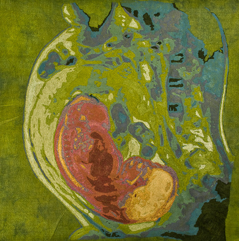 Body imaging provides a powerful window for doctors to view dramatic, noninvasive images of our anatomy. As artists, Paula Chung and Karen Rips find these visuals compelling, with individual stories to tell about joy and pain. The images can be viewed literally or simply as shapes and lines, dark and light spaces.Working separately from the same image, each artist interprets the beauty, strength and vulnerability of the human body through the medium of textiles. The result is a series of paired textile pieces. Chung's pieces tend toward realism, while Rips' works are generally abstract.
