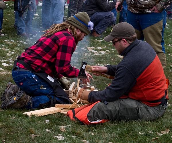 More than snow flies during the Standing Block competition at the Stihl regional qualifier.