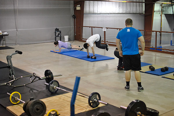 The Penn College Fitness Center this semester introduced Cross Training, the latest addition to its Fitness & Wellness Promotion Series. The one-hour group exercise class involves small circuit-based exercises that are targeted toward burning calories while staying strong and fit. Classes accommodate participants of all fitness levels, from beginners to advanced athletes, on various techniques. The focus is on a progressive format that involves components of cardio, powerlifting and functional calisthenics. The Cross Training classes were offered on Wednesdays in the mezzanine of the Field House, and will continue in future semesters. Participation is free to all members of the Penn College community with a valid ID card. "Look for advertised postings throughout campus and at the Fitness Center (Bush Campus Center, second floor) for details about future classes," said Domenick S. Schiraldi-Irrera, fitness center assistant (who also provided photos). "Bring a friend and we'll see you there for another great exercise class offered here at Penn College!"