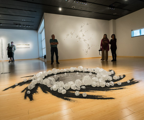 An artist’s “lifelong love affair with water – our most precious resource” is seen in the fragile-looking forms flowing throughout The Gallery at Penn College’s exhibit, “Full Circle.” Tuesday night's opening featured a talk by artist Margaret Smithers-Crump, who led visitors on a voyage through her life inspirations and artistic processes. Smithers-Crump grew up on an island in Lake Muskoka in Ontario, Canada, and now resides in Houston. Her “magical creations” utilizing Plexiglas are designed to imply "fragility” and stir awe, as well as ecological concern for and commitment to our natural environments. “Full Circle” runs through June 30. The gallery’s summer hours are 11 a.m. -5 p.m. Tuesdays through Fridays, and 1-4 p.m. On Sundays. The gallery is closed on Saturdays and Mondays.First and third photos by Tia G. La, student photographer