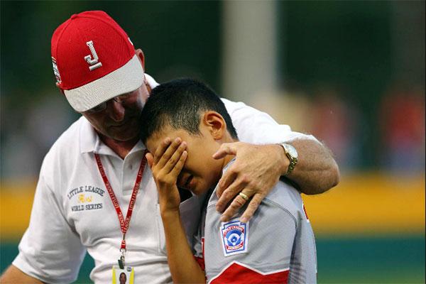 Penn College employee Marlin R. Cromley, renewing his longtime August commitment as a team "uncle" at the Little League Baseball World Series, is featured in a photograph posted to Major League Baseball's website over the weekend. The photo by Alex Trautwig encapsulates – beautifully, genuinely and emotionally – a Japan player's tears and torment and his host's offer of solace and support. As a cashier/customer service associate in The College Store, Cromley is accustomed to diplomatically dealing with students and other members of the public from his front-end cash register. In more than a decade at the Series, Cromley said, he feels fortunate and humbled to also see a more personal side of life. "Moments like that just happen," he explained. "They're kids. Outside the (International) Grove and on the field, everyone expects the best out of them. We're privileged that they let us see them at their most tender moments, too, when they're sometimes at their lowest, and we just try to console them the best we can."
