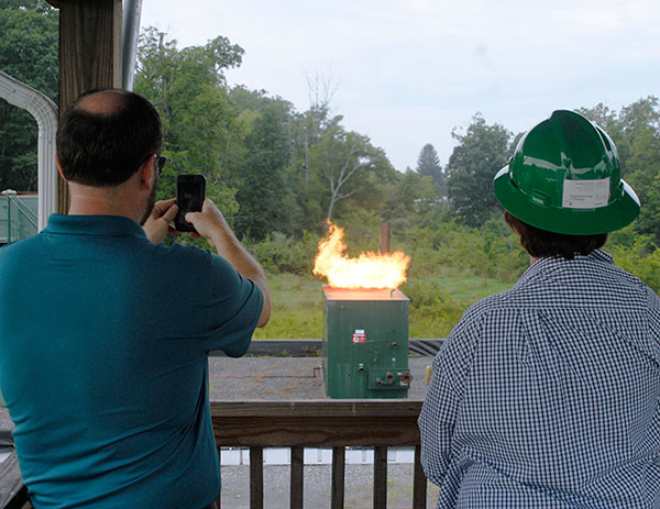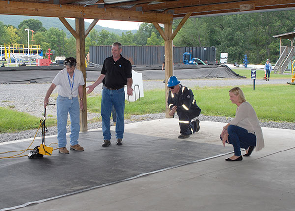 Regulators from 17 states and four Canadian provinces toured the region Wednesday, stopping by the Center for Business & Workforce Development on Penn College's main campus and the Energy Technology Education Center to its south. The visit was arranged by James R. Ladlee, interim assistant director of energy, entrepreneurship and community development programs for Penn State Cooperative Extension. Following a stop at the wellfield training lab, facilitated by Daniel R. Mendell, ShaleNET U.S. consultant/instructor, the group was treated to a variety of demonstrations at ETEC (a collaborative training site for current and prospective gas-industry employees, as well as emergency response crews). New Pig Energy, among the generous corporate partners in the center's operation, showcased its spill-containment liner before the guests traveled to lunch and other industry-related locations.