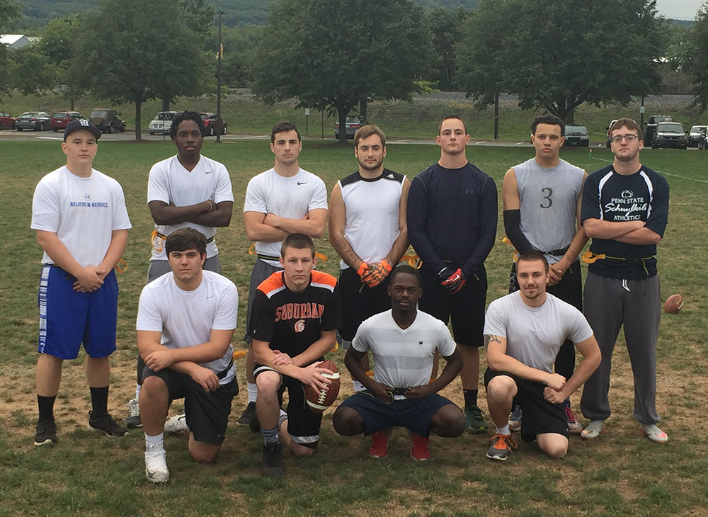 The freshmen started Wednesday's annual Homecoming flag football game in possession, driving the ball downfield to take an early 7-0 lead ... and that was it. The squad of upperclassmen went on to score 42 unanswered points to defeat the first-year team, 42-7. The upperclassmen scored on touchdown passes, touchdown runs and interceptions returned for touchdowns. Determined not to give up, the freshmen made one final drive to within the upperclassmen's 20-yard line, only to have the ball intercepted as time ran out.Photos by Jeremy R. Bottorf, coordinator of intramural sports/campus recreation