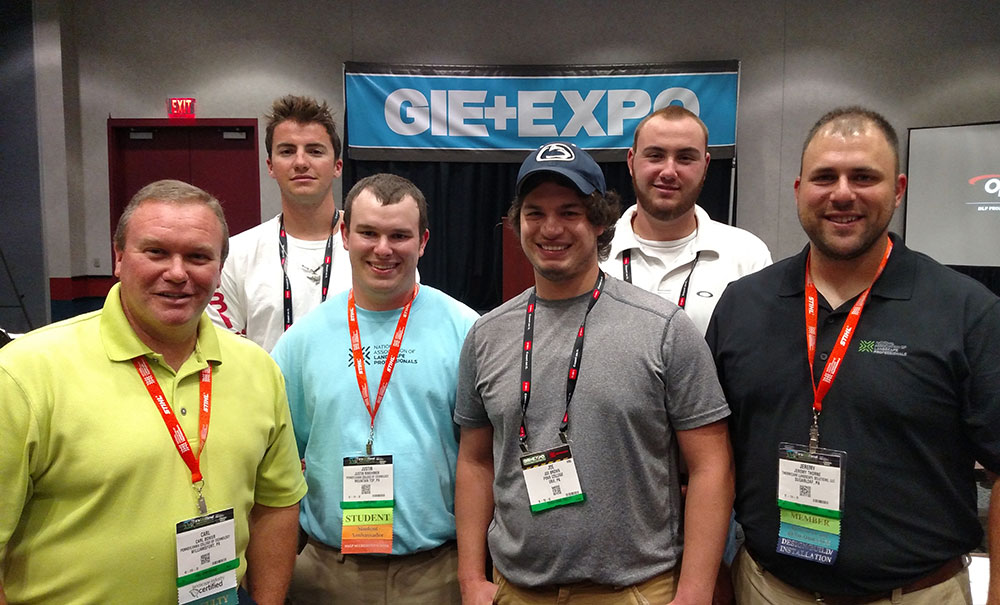 A member of Penn College's horticulture faculty recently attended the GIE+Expo in Louisville, Kentucky, and "Landscapes 2016," a simultaneous educational/networking event sponsored by the National Association of Landscape Professionals. Carl J. Bower Jr. was joined by four students in the college's landscape/horticulture technology: landscape emphasis – three who traveled to the expo and a fourth who represented Penn College as a student ambassador for the NALP. Attending the trade show were Taylor J. Corbett, of Ramsey, New Jersey; Joseph M. Brown, of Erie; and Griffin T. Fulton, of Mertztown, and the student ambassador was Justin M. Rinehimer, of Mountain Top. Alumnus Jeremy L. Thorne, who graduated in 2013 with a pair of horticulture-related degrees, was an ambassador as a student and still volunteers to help NALP run its ambassador program. Ambassadors are chosen from landscape and horticulture programs across the country, and Rinehimer was one of nine students nationwide to be selected. The ambassadors help the NALP register individuals, set up the educational sessions and introduce the speakers. "This gives them a great chance to network with industry leaders and listen to a wide range of professional education, which is attended by leaders from across the nation," Bower noted, adding that they also get to visit more than 750 exhibits and tour a 19-acre demonstration area. “Getting the opportunity to represent Penn College at this year's GIE+Expo was something that I will remember for the rest of my life," said Rinehimer, who is scheduled to graduate in the spring. "The opportunity to meet with industry leaders, as well as making connections with business owners ..., was something that I am glad to achieve. I hope that future students will realize what a great opportunity it is to be a student ambassador and hopefully experience the same things I did."Photo provided