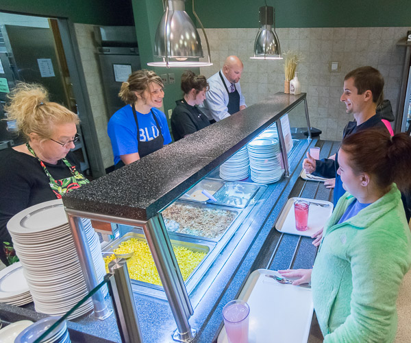 Dining Services' third annual Thanksgiving Dinner, served Tuesday evening in the Keystone Dining Room, provided a delicious opportunity for Penn College students, co-workers, friends and family to count their blessings and celebrate the season. For $7.50, the campus community enjoyed a turkey feast with all the fixings (filling, mashed potatoes, gravy, corn, green bean casserole, rolls, cranberry sauce and desserts). Nearly 300 dinners were served; diners also donated canned goods and other nonperishables for The Cupboard, the college's food pantry in the Bush Campus Center.Photos by Tia G. La, student photographer