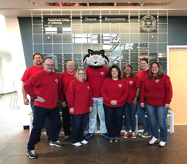Penn College's Patriot Scholarship, established to assist veteran students and their children, is 60 percent of the way to its objective – and well ahead of schedule. While more concrete figures will be available after Spring Break, the unofficial total for collections over the past 13 months stands at about $15,000. That represents substantial progress toward the $25,000 target for full endowment, a goal that organizers gave themselves three years to meet, and reflects the very giving spirit of the campus community. The Financial Aid Office staff, furthering the success it experienced with the Mary Beth Saar Memorial Scholarship, has collected about $1,300 in office solicitations this February and last, and about $5,000 by selling T-shirts to wear for "Red, White and Blue Jean Mondays."Photos provided