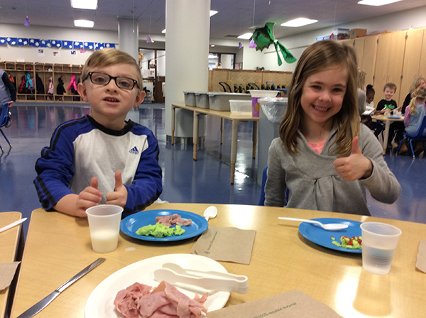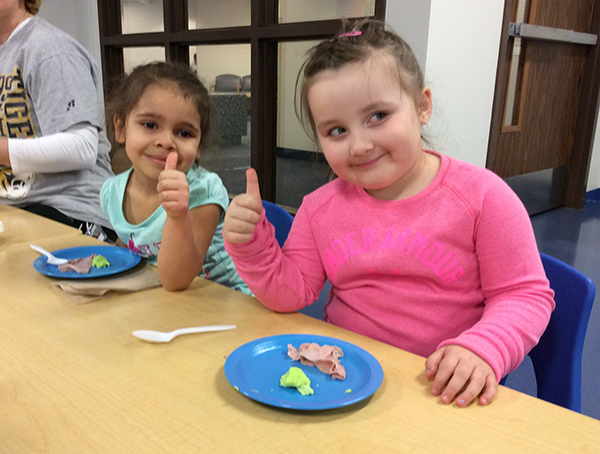 Youngsters at the Dunham Children’s Learning Center celebrated Dr. Seuss’s birthday Thursday by enjoying an appropriate morning snack after hearing one of the author's more famous works. The children showed their appreciation to aide Karen L. Fischer with a cheer, “Hooray for Kitchen Karen and green eggs and ham!” The National Education Association’s Read Across America Day is a celebration of literacy held annually on March 2, Dr. Seuss’s birthday.Photos by Barbara J. Albert, Children's Learning Center director, and Sonya K. Kellogg, group leader