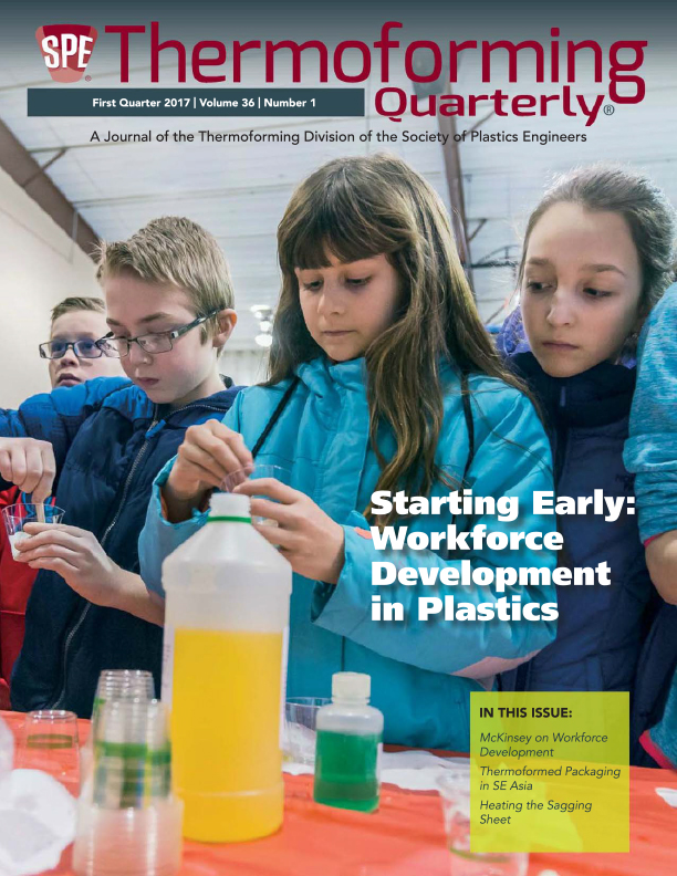 February's extended visit from the PlastiVan is featured in the latest issue of Thermoforming Quarterly, a Journal of the Thermoforming Division of the Society of Plastics Engineers. Photos by Larry D. Kauffman, a digital publishing specialist/photographer at Penn College – including a cover shot taken at the Feb. 16 Science Festival in the Field House – and a two-page article colorfully recap the hands-on peek at plastics careers: Thermoforming QuarterlyThe PlastiVan is also featured in a piece by Eve Vitale, SPE Foundation director, published in Plastics Engineering.