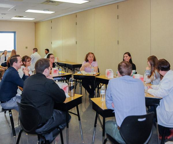 The students participated in roundtable discussions of a medical case focused on the challenges of obesity, learning from one another how each discipline contributes to a patient’s care.