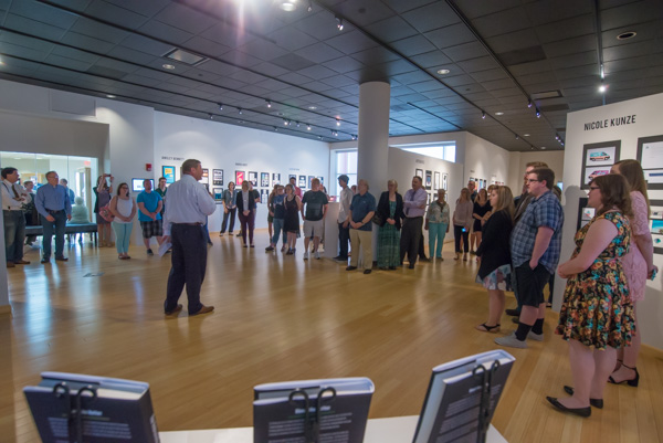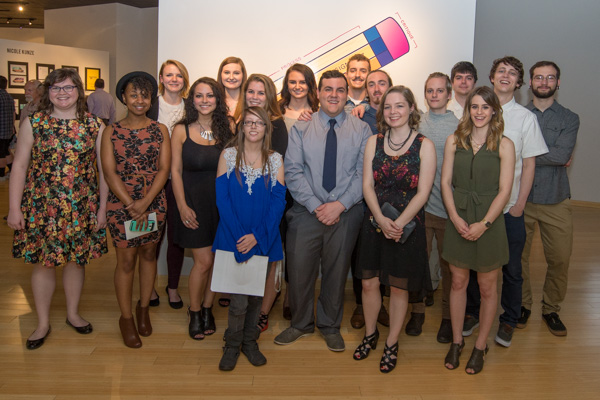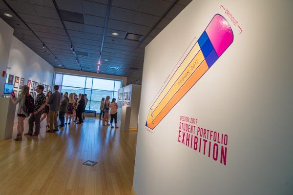 Around 200 people joined in the artistic celebration of “Design: 2017” at its opening reception Friday. Seventeen graphic design seniors presented their portfolios to appreciative family, friends, the college community and other admirers who filled The Gallery at Penn College. The annual exhibition gives students a chance to present their work in marketing, branding and design. The works will be on display through May 12. Exhibit hours are 10 a.m. to 5 p.m. Tuesdays through Thursdays, 10 a.m. to 1 p.m. Fridays, and 1 to 4 p.m. Sundays. (The gallery will be closed May 7, as well as Saturdays and Mondays.)