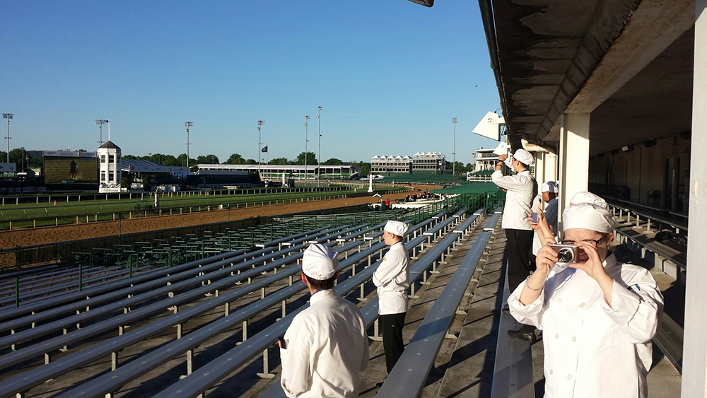 Students in several majors are working hard this week throughout Churchill Downs as the facility – and horseracing fans already onsite – gear up for Saturday’s Kentucky Derby. The students are stationed in kitchens and luxury suites to prepare food and help serve guests. While Derby Week encompasses a variety of events at the Downs throughout the week, including the Kentucky Oaks race for fillies on Friday, the main event, scheduled for 6:46 p.m. Saturday, is expected to attract more than 170,000 guests.Photos provided