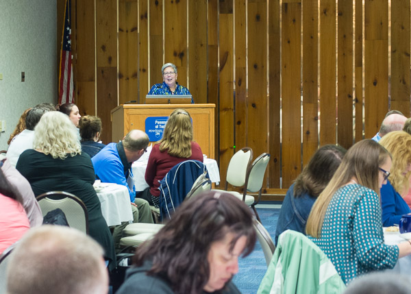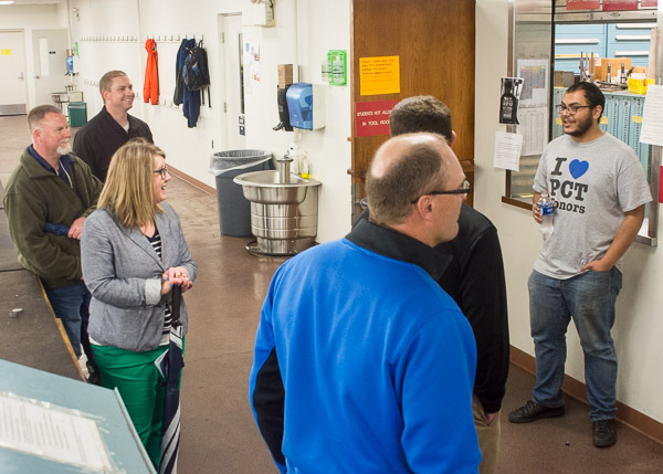 Seventy-two educators from the Northern Tioga School District spent their scheduled in-service day at Penn College on Friday. The College Transitions Office scheduled a full day of professional development for the group, including tours of the college’s six academic schools, a keynote by President Davie Jane Gilmour on applied technology in the 21st century, and a conversation about how the college and school district can work together to face the challenges in educating students, led by Paul R. Watson, dean of academic services and college transitions, and Michael J. Reed, dean of sciences, humanities and visual communications. The school district reached out to the college to arrange the professional development opportunity for its teachers, said Tanya Berfield, manager of college transitions. “They wanted to look beyond the Northern Tier and see what other postsecondary institutions they can be in collaboration with,” she said.
