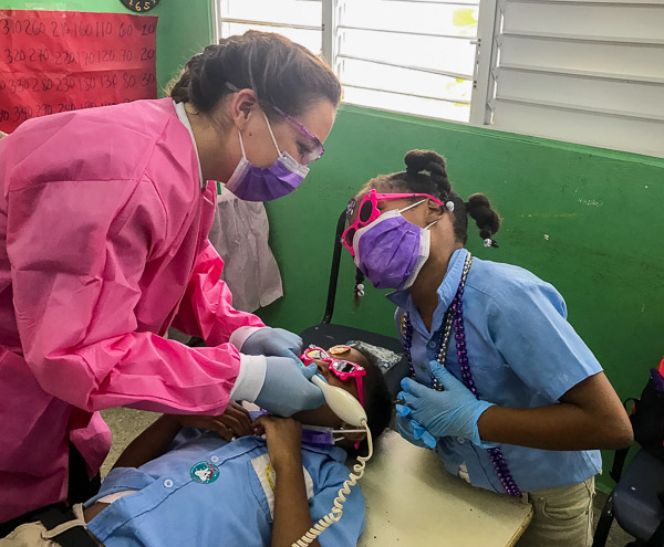 Students in Penn College’s dental hygiene bachelor’s degree major made a summer stop in the Dominican Republic, where they provided free dental services to between 250 and 300 children in underserved neighborhoods. The students first visited the town of Las Terrenas, on the northeast coast, where they spent four days providing free dental clinics at four schools before traveling south to Santo Domingo, the nation’s capital, to serve a school there. A highlight of the trip happened in Santo Domingo, where the students’ accommodations were within walking distance of the school in which they would establish a clinic. On their way back from the school, with supplies in hand, the students came upon a dirt alley where small children were playing. “Some of the students sort of dropped everything and started playing with them,” said Rhonda J. Seebold, part-time instructor of dental hygiene, who led the study abroad trip. With the help of Seebold’s son, who speaks fluent Spanish, the children’s parents excitedly accepted an offer to provide fluoride treatments to the children, and the students went about setting up a clinic. “Part of what I teach the students is that you make do with what you have,” Seebold said. While in the Dominican Republic, Seebold estimates that the 12 students treated about 75 children a day. The students were enrolled in a summer elective course called International Oral Health Care Experience.Photos provided