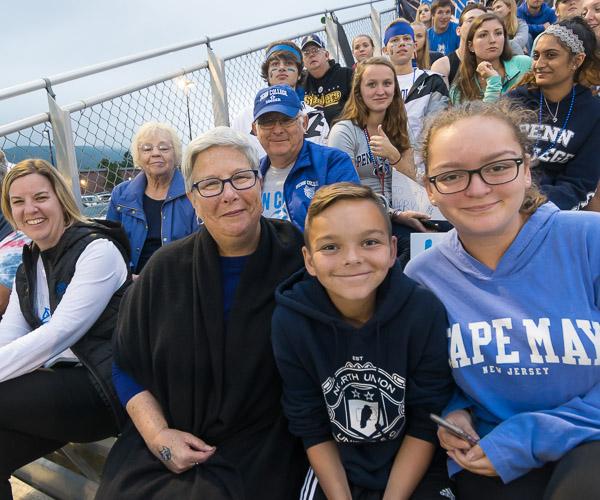 Matt Blymier, assistant director of athletics /sports information director, traverses the bleachers amidst the Wildcat Faithful.