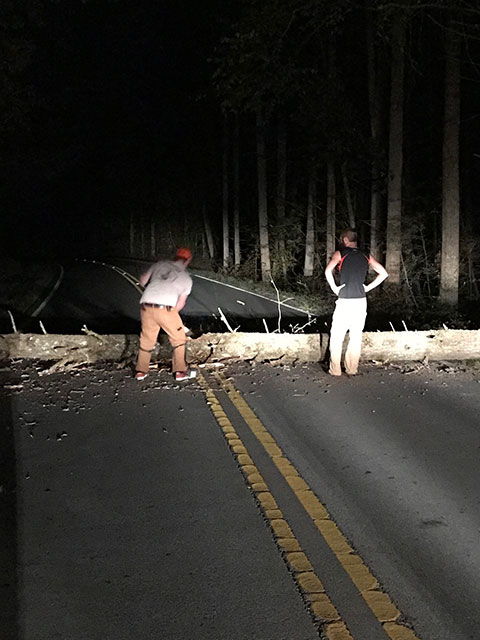 Returning from an Oct. 7 woodsmen’s competition in North Carolina’s Pisgah National Forest, the Pennsylvania College of Technology Forestry Club – conveniently toting the tools that had earlier brought many of the students individual honors – put their skills to work in a much-appreciated display of public assistance.