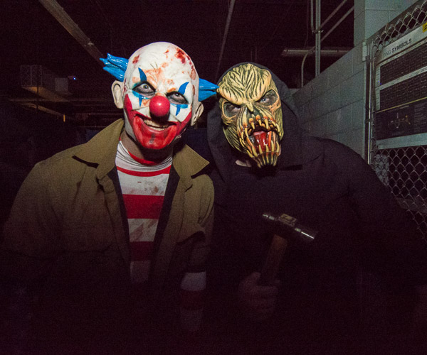 "Arc Asylum 3.0," the American Welding Society student chapter's third annual house of horrors, filled everyday instructional space with extraordinary shrieks and nervous laughter. Amid the dark hideaways and creepy corners of the lab (Room A136 of the Avco-Lycoming Metal Trades Center) – and including some top-tier talent in their gallery of ghouls – the Penn College students again took full advantage of the layout's macabre potential. "Everyone involved did a fantastic job in pulling the event off without a hitch. Dr. Gilmour volunteered to help work the haunted house, dressed in a great costume including all the touches like fake blood and a face-peeling zipper effect," welding instructor Jacob B. Holland said. "Our AWS chapter raised a significant amount of money, since we increased our attendance by 50 percent over last year. There were a lot of happy customers that loved the scares we were able to provide them. We look forward to attempting to be even bigger and better next year!" A portion of the proceeds were donated to the Out of the Darkness Walk for suicide prevention, and contributions were accepted for The Cupboard campus food pantry.Photos by Tia G. La, student photographer