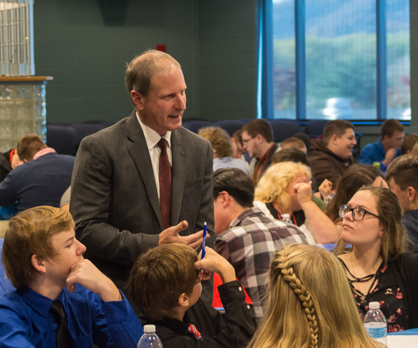 Hundreds of area high school students packed into Penn’s Inn on Wednesday to sharpen their entrepreneurial acumen. The students are participating in the Pennsylvania Entrepreneurship Challenge, a project of the World Council on Financial Literacy. At the event, Mark A. Ciavarella, associate professor of business administration/management at Penn College, and Tim Keohane, director of the small business development center at Lock Haven University, took students – who arrived with a business idea – through the steps of developing a business plan, from explaining the need their business will meet, through analyzing the competition, identifying their target market, and estimating their start-up costs and profits. After a three-hour session that alternated large-group instruction with work time, the students returned to their schools with skills to write their business plans and enter the Pennsylvania Entrepreneurship Challenge competition. The event was organized by Carolyn Shirk, vice president of World Council on Financial Literacy.
