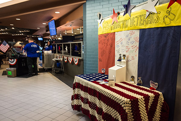 A Veterans Day Celebration Dinner, from 5 to 8 p.m. Thursday in CC Commons, allowed the campus community to recognize servicemen and women in the Penn College family. The evening's "all-American menu" featured chicken wings and crab legs, attendees were afforded the opportunity to show their appreciation, and those with military ID were eligible for giveaways.Photos by Rachel A. Eirmann, student photographer