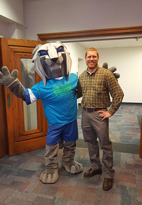 Alumnus Derek F. Knipe, a manufacturing engineer at PMF Industries in Williamsport, gets a Wildcat welcome back to campus.